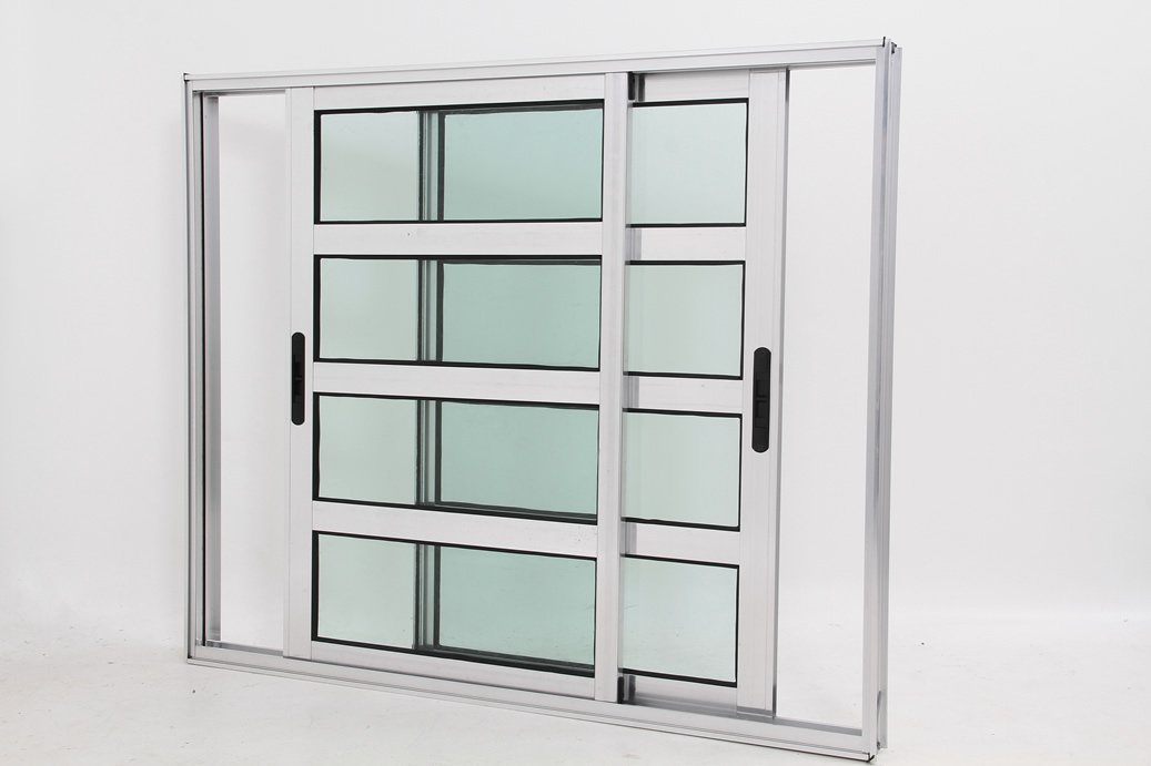 Janela Travessa em Alumínio Brilhante com 2 folhas Móveis