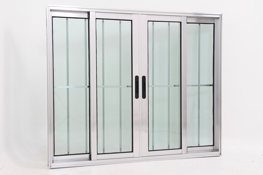 Janela de Vidro 4 folhas de Alumínio Brilhante com Grade – Premium