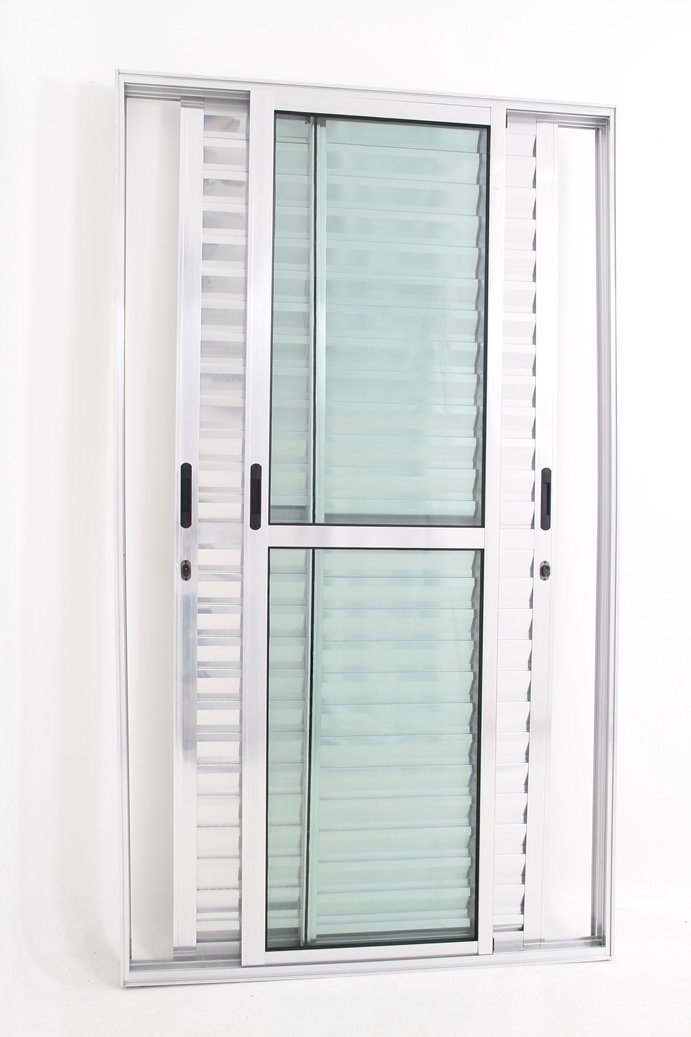 Porta Balcão 3 folhas móveis de Alumínio Brilhante
