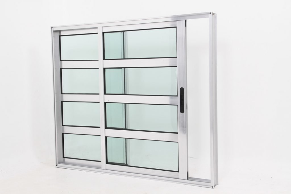 Janela Travessa em Alumínio Brilhante com 2 folhas