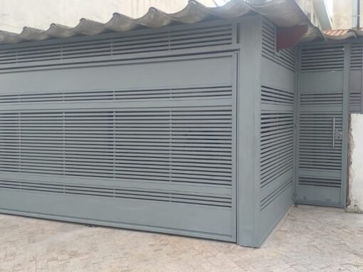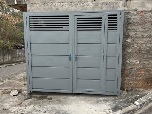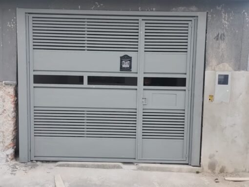 Fabricado sob medida em aço galvanizado, ele é ideal para garagens residenciais e comerciais, com possibilidade de automatização completa.