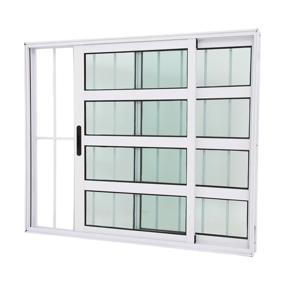 Janela Travessa em Alumínio Branco com 2 folhas com Grade - Premium