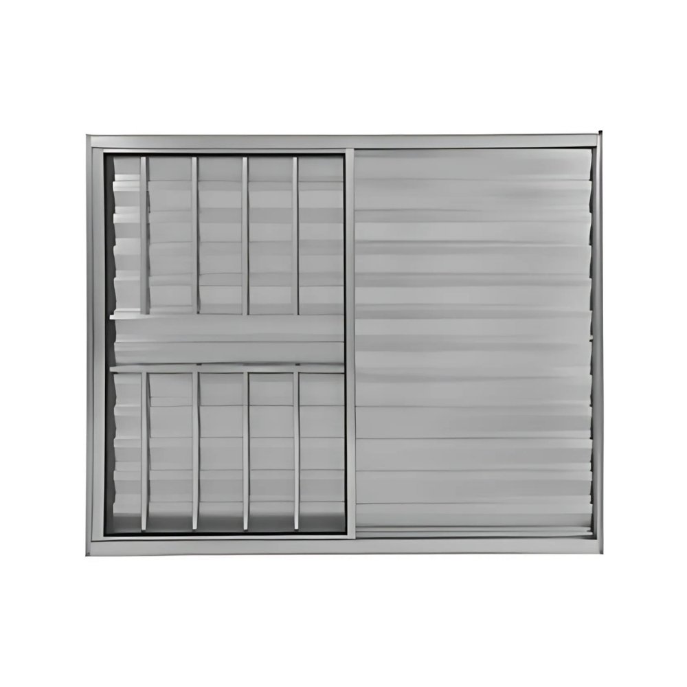 Essa Janela Veneziana é composta por 3 folhas, sendo 1 folha veneziana fixa, 1 folha veneziana móvel e 1 folha de vidro liso e Grade de Proteção.