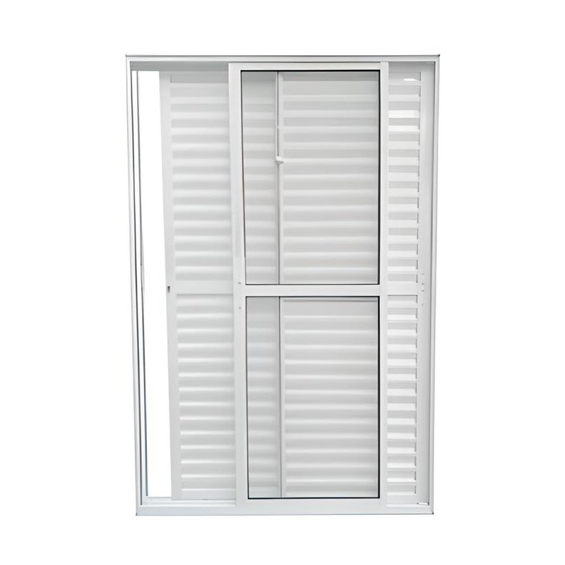 Essa Porta Balcão Alumínio Branco é composta por 3 folhas móveis, sendo, 2 folhas venezianas móveis e 1 folha de vidro liso.