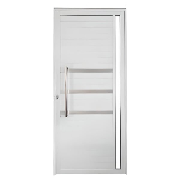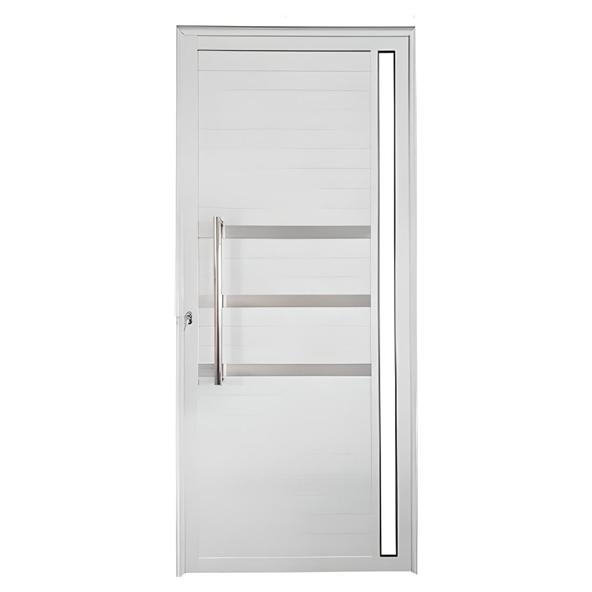 Porta de Alumínio Lambril Branco com Vidro e Friso Pivotante Linha Premium 25