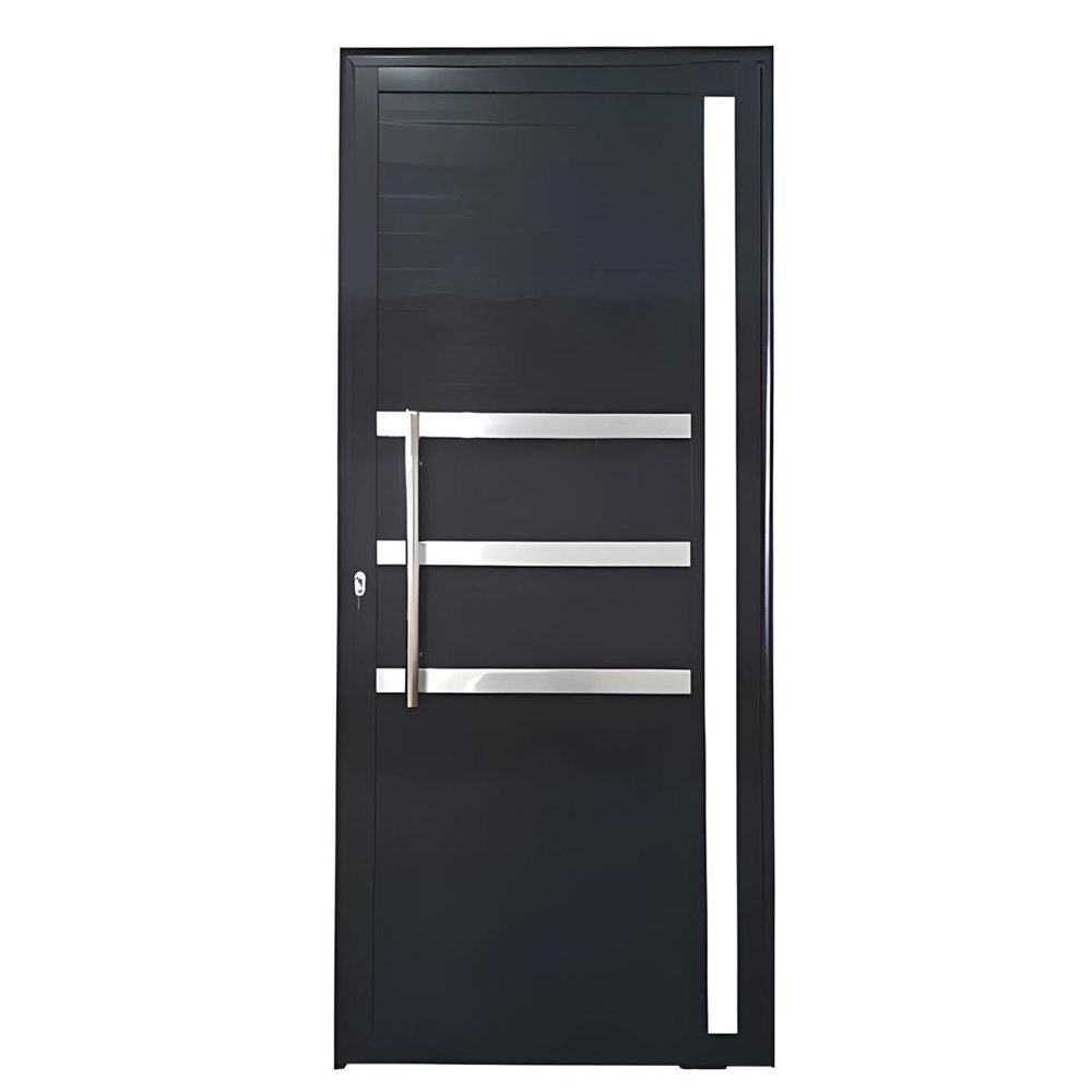 Porta de Alumínio Lambril Preto com Vidro e Friso Pivotante Linha Premium 25