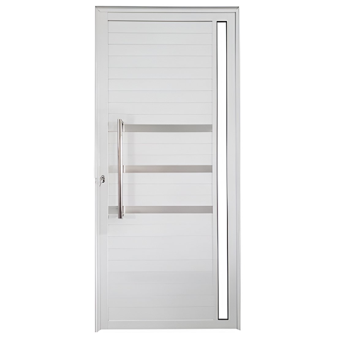 Porta lambril com friso e vidro lateral. Um toque de modernidade para sua casa com a Porta lambril com friso com 2 Vidros.