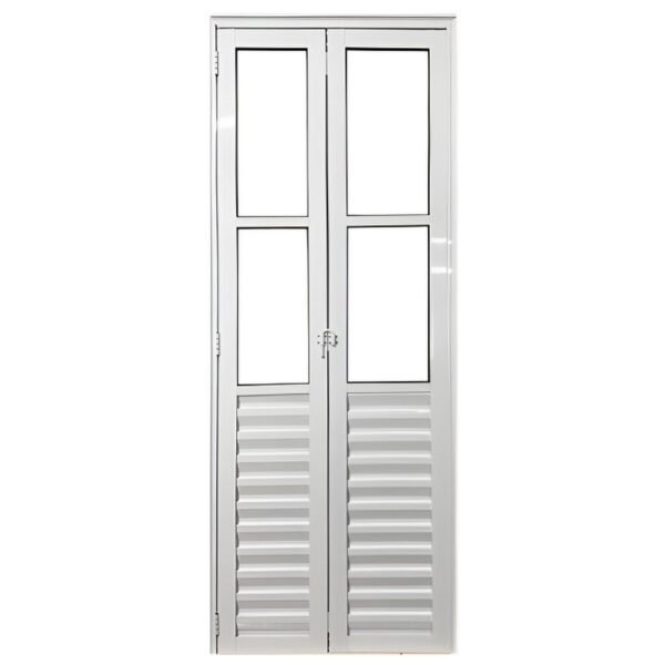 Esta é uma porta composta por palheta venezianas Horizontal, em duas repartições ao meio e com vidro, leve e de fácil manuseio, podendo ser instalada de forma prática.